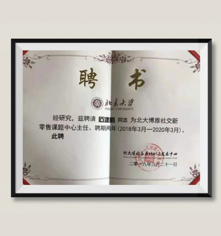 石建鹏:受聘为——“北大博雅社交新零售课题中心主任”