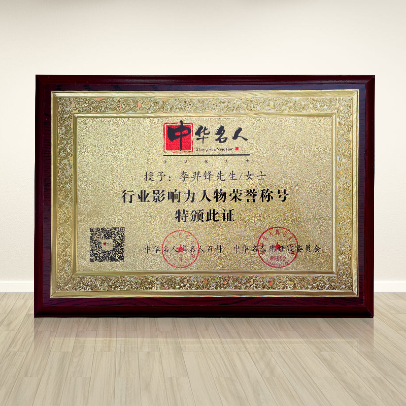 李羿锋:荣获“中华名人行业影响力人物”称号