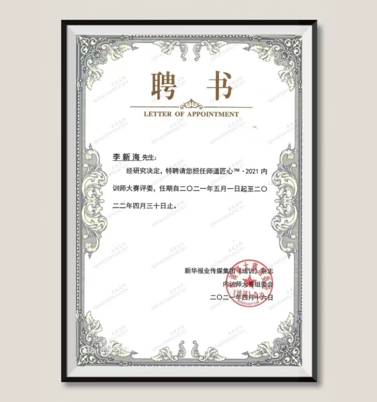 李新海:受邀担任师道匠心™·2021内训师大赛评委