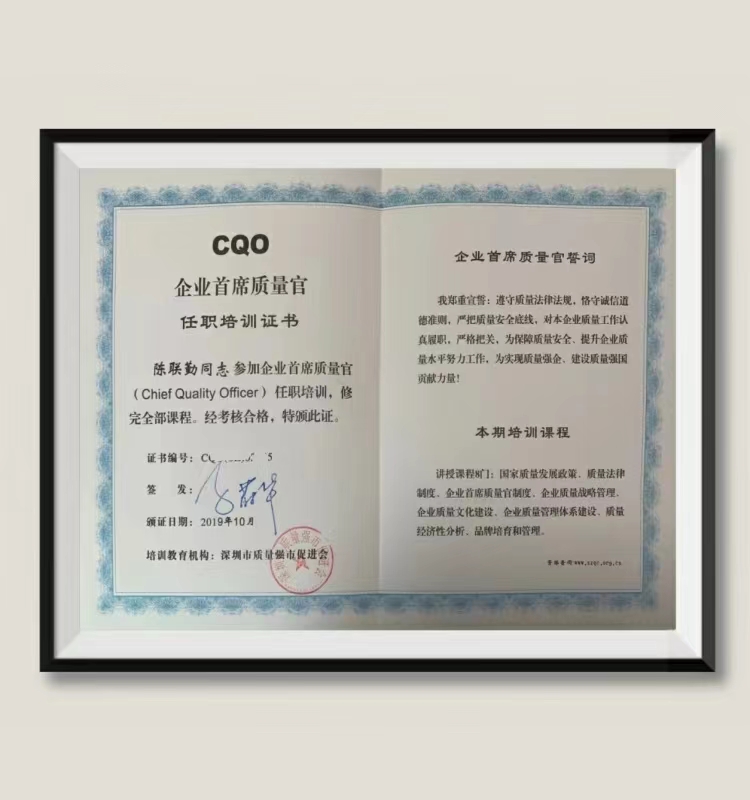 陈联勤:企业首席质量官 任职培训证书