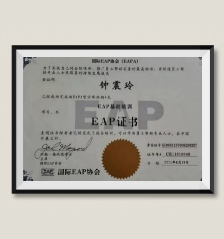 钟震玲:荣获国际EAP协会(EAPA) 认证企业 EAP执行师职称