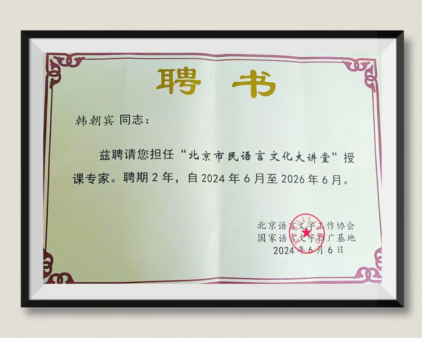 韩朝宾:受聘为“北京市民语言文化大讲堂”授课专家