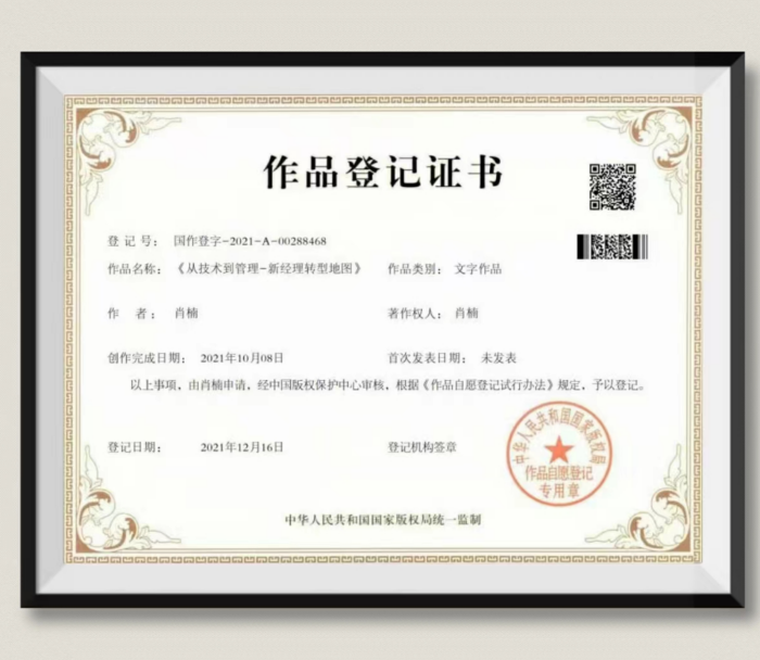 肖楠:《从技术到管理-新经理转型地图》作品登记证书