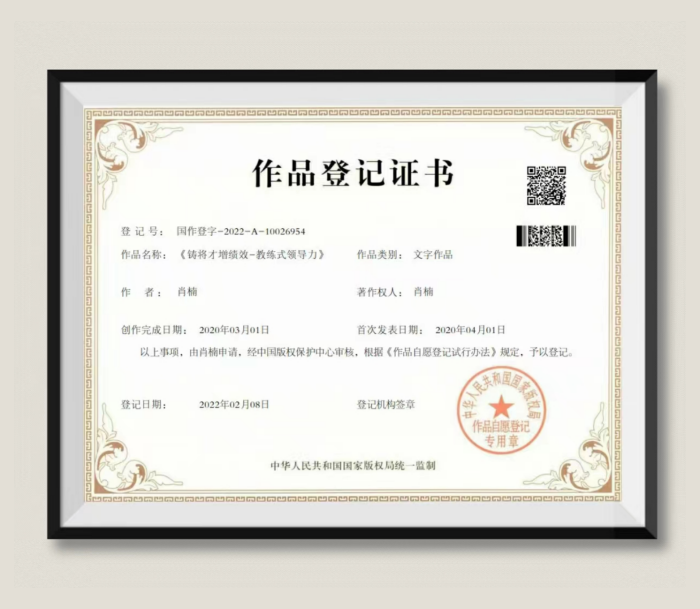 肖楠:《铸将才增绩效-教练式领导力》作品登记证书