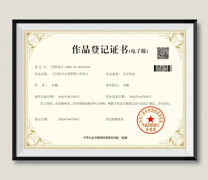 肖楠:《目标与计划管理工作坊》作品登记证书