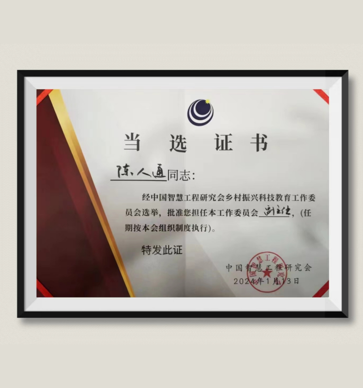 陈人通:当选为“中国智慧工程研究会乡村振兴科技教育工作委员会副主任”