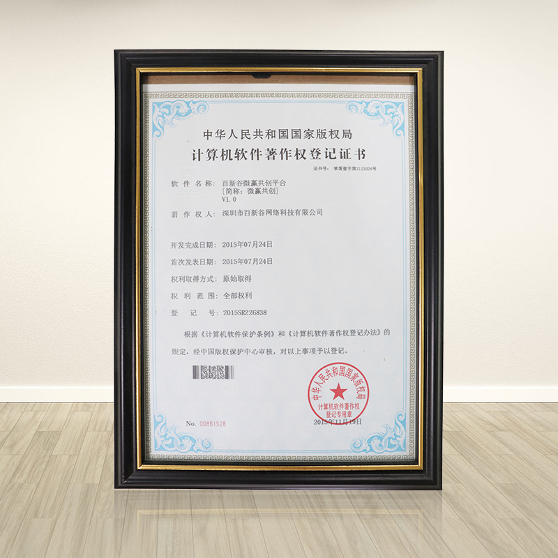 徐育渊:百新谷微赢共创平台V1.0软件登记证书