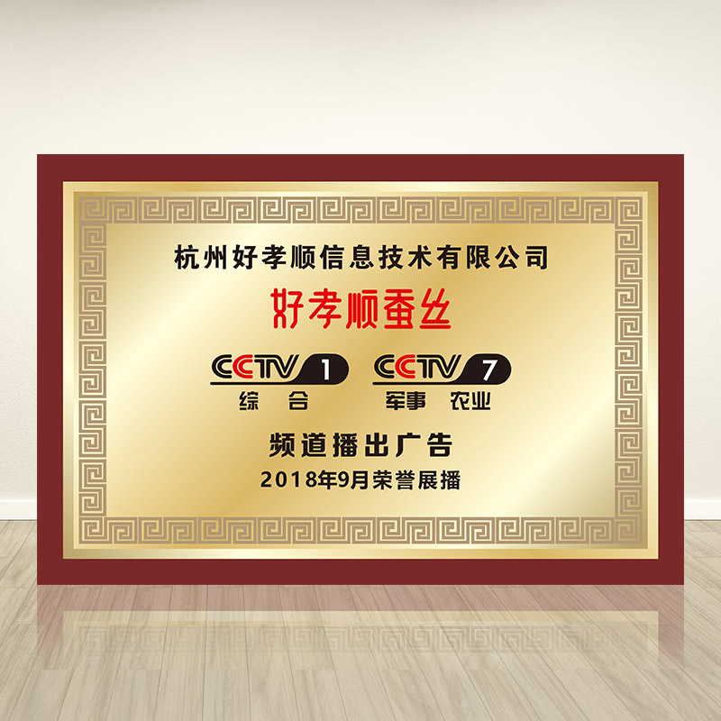 吕奇嵩:好孝顺蚕丝产品被中国CCTV电视台频道播出广告荣誉展播