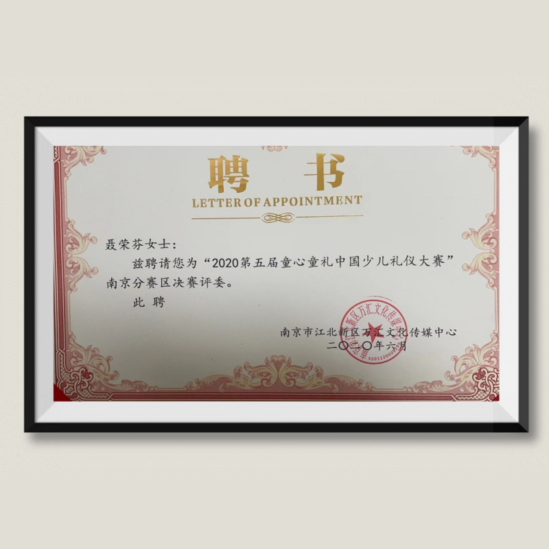 聂荣芬:受聘为“2020第五届童心童礼中国少儿礼仪大赛”南京分赛区决赛评委