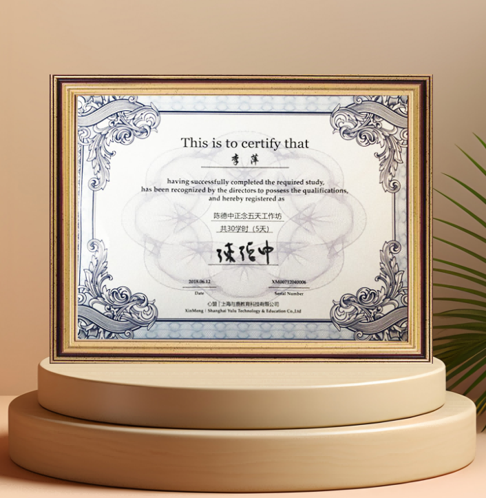 李萍 :荣获——《陈德中正念五天工作坊》结业证书